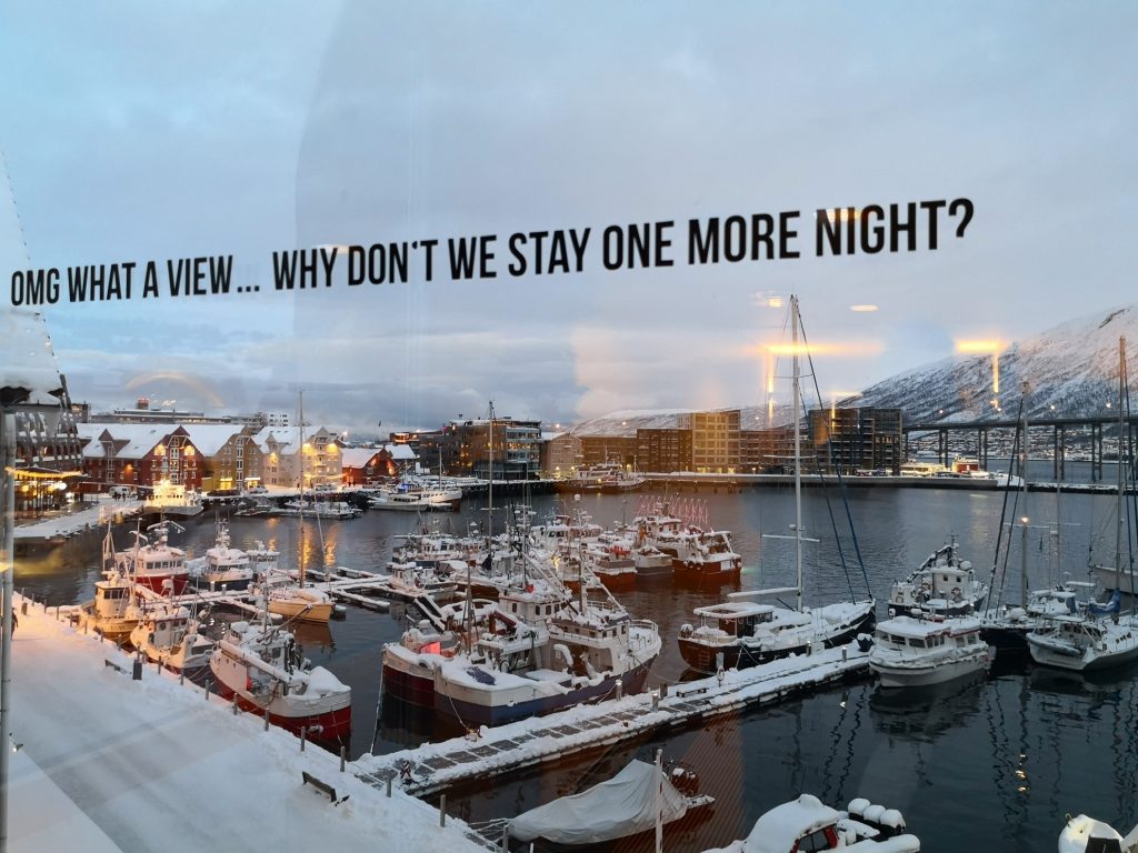 Pentru a ajunge in Tromso, am optat pentru un zbor cu escala la Oslo, iar apoi zbor direct de aproximativ 2 ore. Am aterizat in jur de ora 11, iar ce m-a frapat a fost semi-intunericul din miezul zilei, fenomen cu care nu ma mai intalnisem pana atunci dar care a marcat inceputul unei altfel de experiente.
