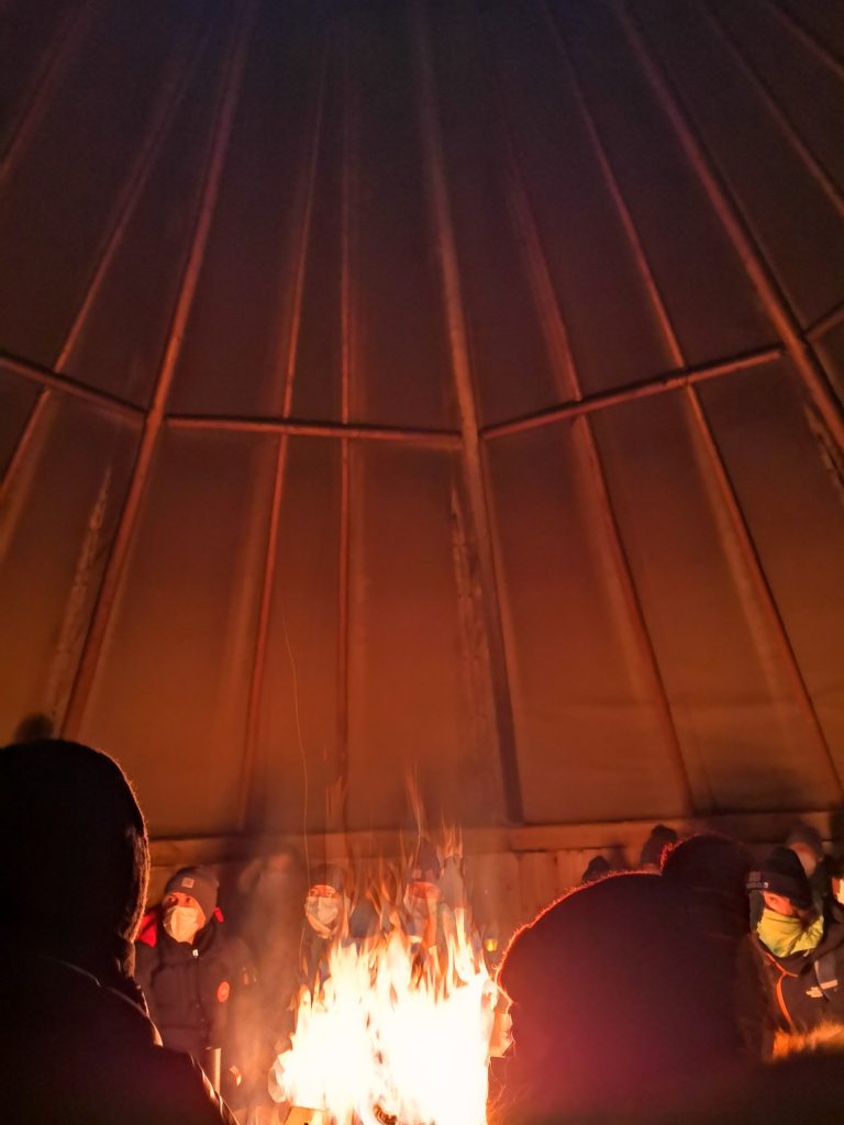 S-a organizat o masa in cortul lor traditional, cu un fel de mancare tipic bucatariei Sami, fel care se serveste la ocaziile lor importante. Mie mi-a placut mult, am incercat sa pastrez gustul acela in suflet. Ne-au povestit apoi despre istoria lor, despre ce inseamna pastoritul renilor, cum e viata in tinuturile acelea, traditiile lor si la final pastorita a cantat un cantec specific.